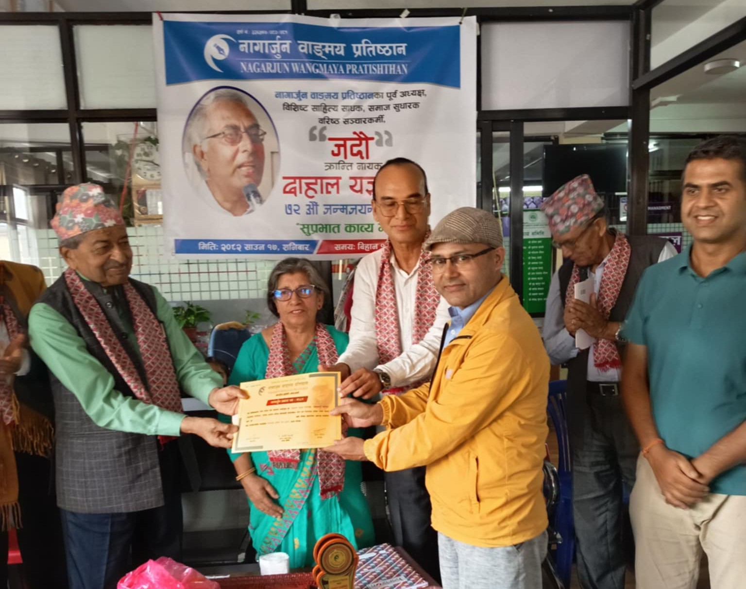 दाहाल यज्ञनिधिको ७२ औँ जन्मदिनको अवसर पारेर गरिएको विशेष समारोहमा युवा साहित्यकार डा. रमेश शुभेच्छुकलाई नागार्जुन बाङ्मय जदौ पुरस्कार समर्पण गरेको छ । पुरस्कारको राशी नगद रु. १५,०१५ रहेको छ । सो पुरस्कार यसै वर्षदेखि दिन थालेको कुरा प्रतिष्ठानका सचिव युवराज नास्तिकले बताउनुभयो ।