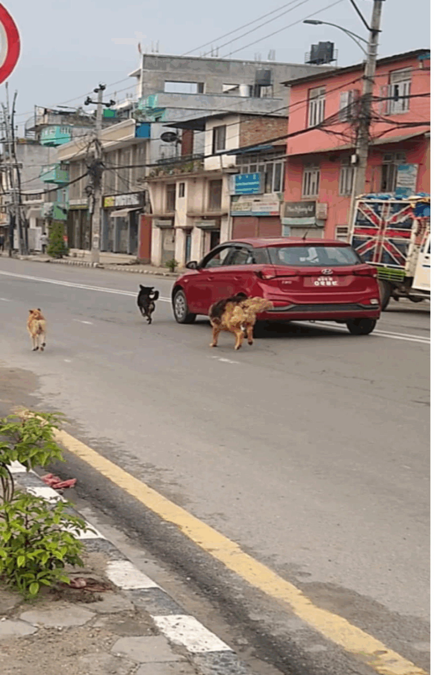 कुकुरले असामान्य अवस्था सहँदैन, अस्वाभाविक दृश्य उसलाई मन पनि पर्दैन। सहर बजारमा गुडिरहने दुईपाङ्ग्रे होस वा चारपाङ्ग्रे गाडीहरुको पछिपछि दौड्दै झम्टिने प्रयास गर्छन् कुकुरहरु। किन कि सवारी साधन प्राकृतिक वस्तु वा साधन होइन। मानव निर्मित यन्त्र /उपकरण मान्छेले मात्र चिन्छ र चलाउँछ। अन्य प्राणीहरुले यस्ता विकासे साधनलाई रुचाउँदैनन्। फलतः कुकुरले सवारी साधनको पछिपछि दौड्दै झम्टिने प्रयास गर्छ।