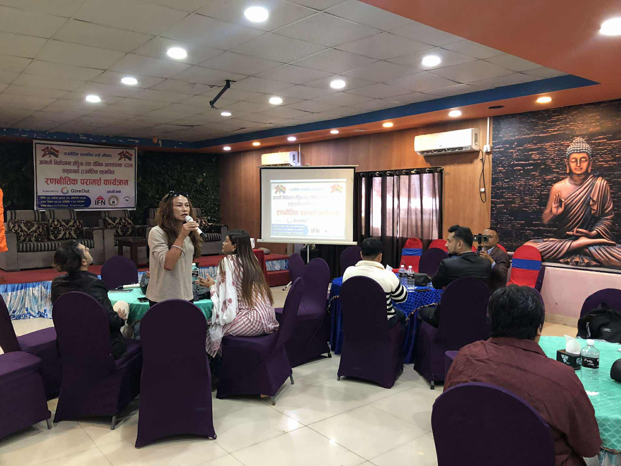 गिभ आउटको सहयोगमा मायाको पहिचान नेपाल, लिड नेपाल, इन्क्लुसिभ फोरम लगायत संस्थाहरूको संयुक्त आयोजनामा भएको ‘राजनीतिक सहभागिता, हाम्रो अधिकार’ विषयक राष्ट्रिय परामर्श कार्यक्रममा सहभागीहरूले लैङ्गिक तथा यौनिक अल्पसङ्ख्यक समुदायको प्रतिनिधित्व सुनिश्चित हुनुपर्नेमा जोड दिए।