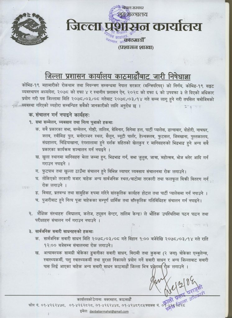 [ उपत्यकाका प्रमुख जिल्ला अधिकारीहरुले जारी गरेको सूचना हेर्नुहोस् ।]